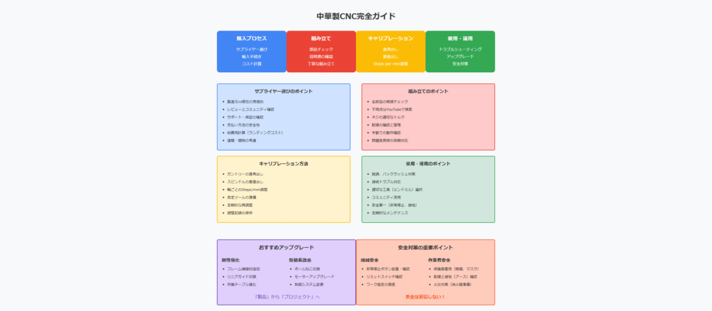 これまでの記事で、中華製CNCの基本知識、リスク、そして選び方のポイント(技術仕様)について解説してきました。いよいよ今回は、その知識を元に実際に中華製CNCを購入し、組み立て、調整し、そして使いこなしていくための実践的 … Continued